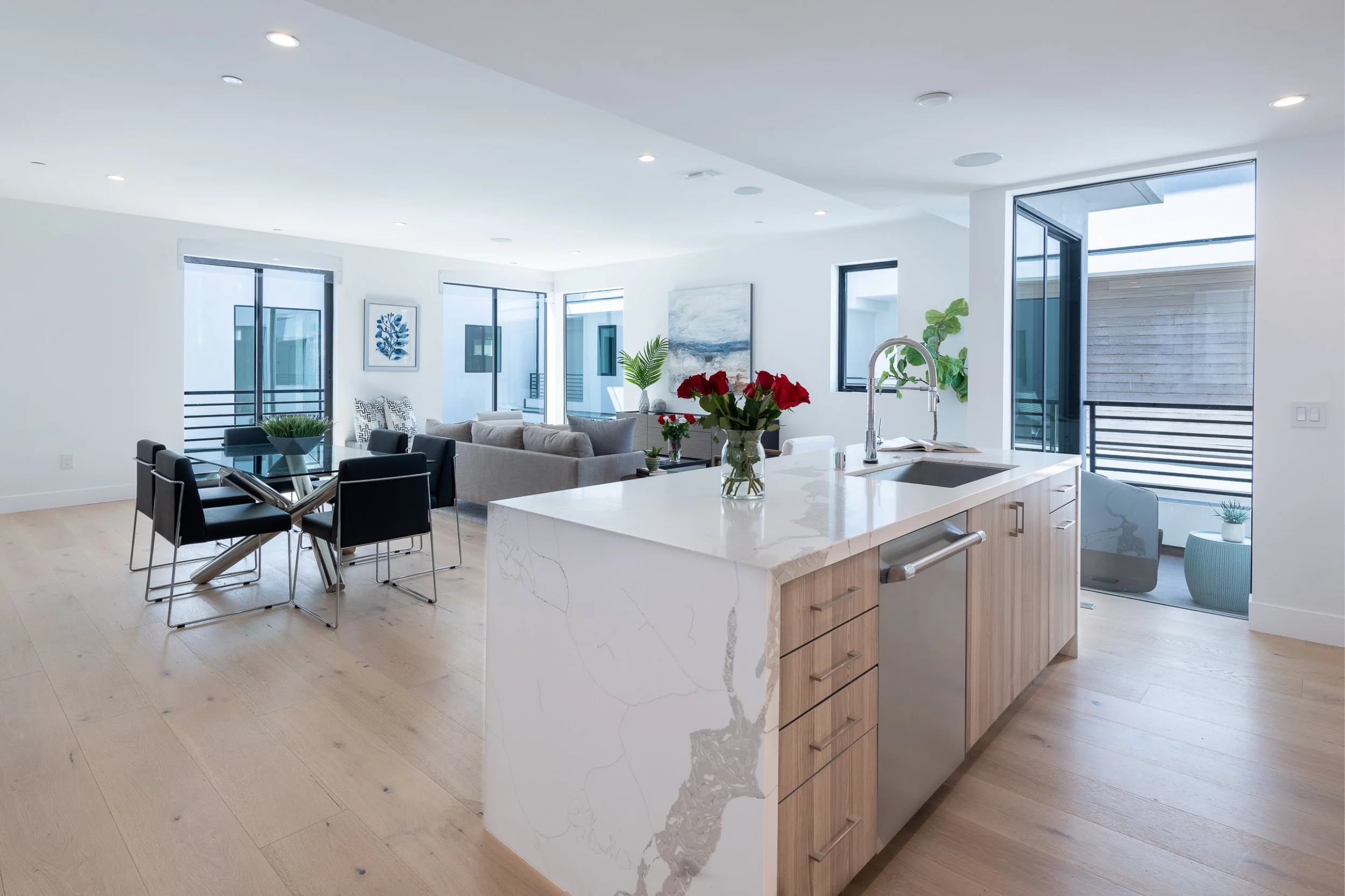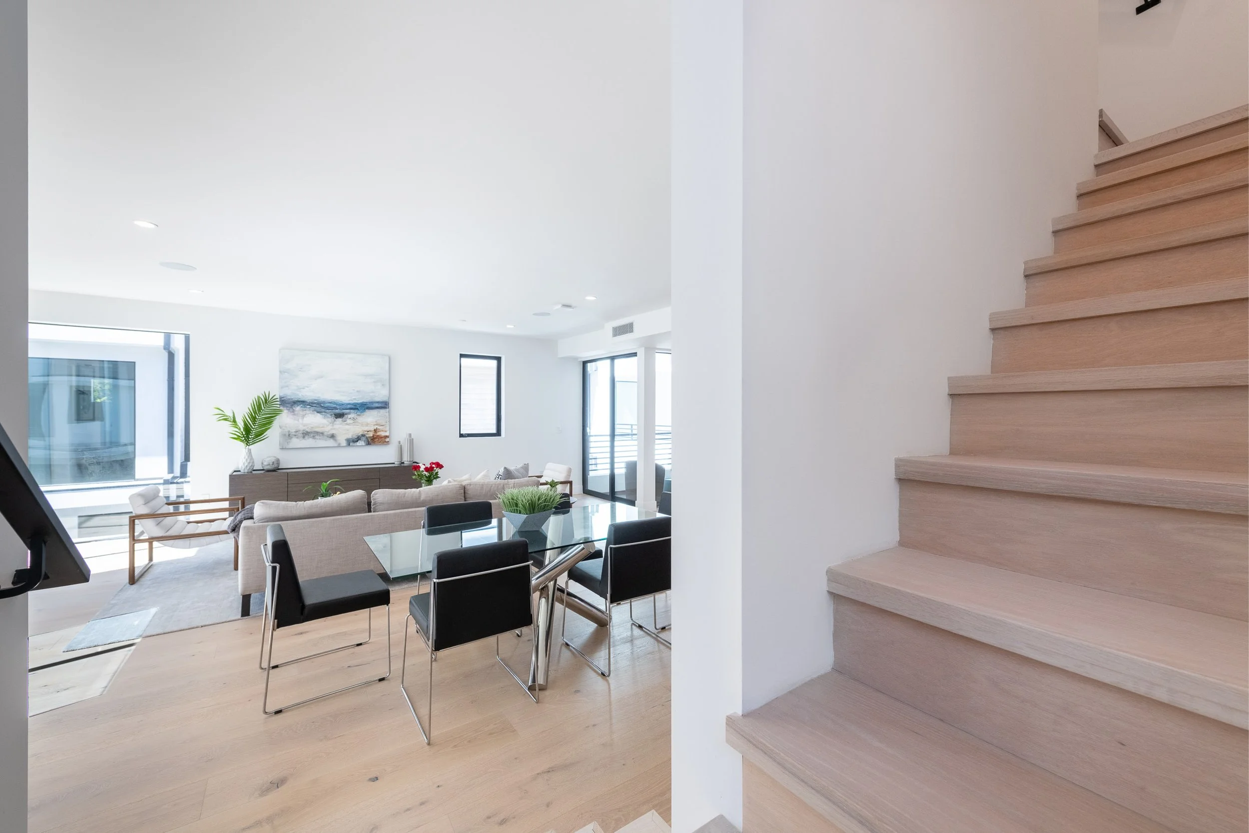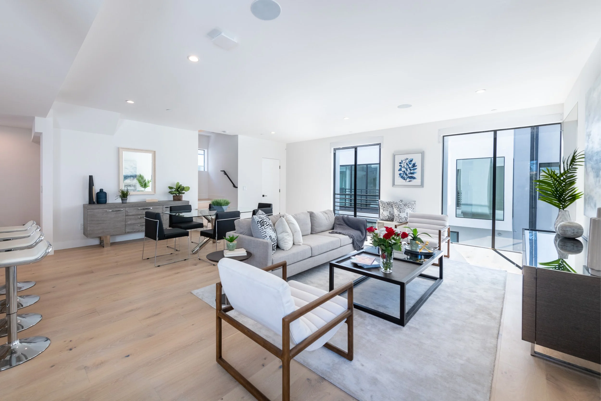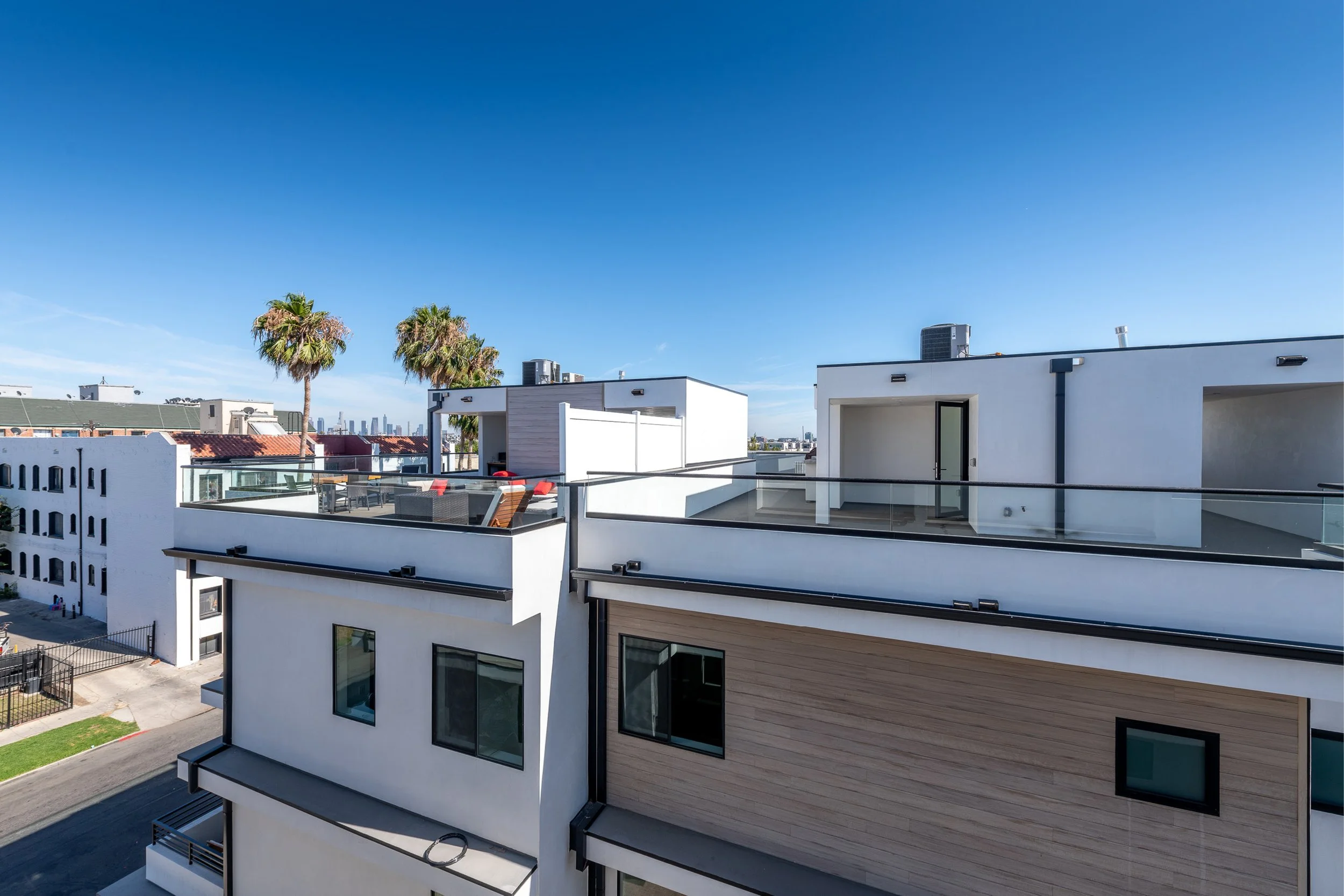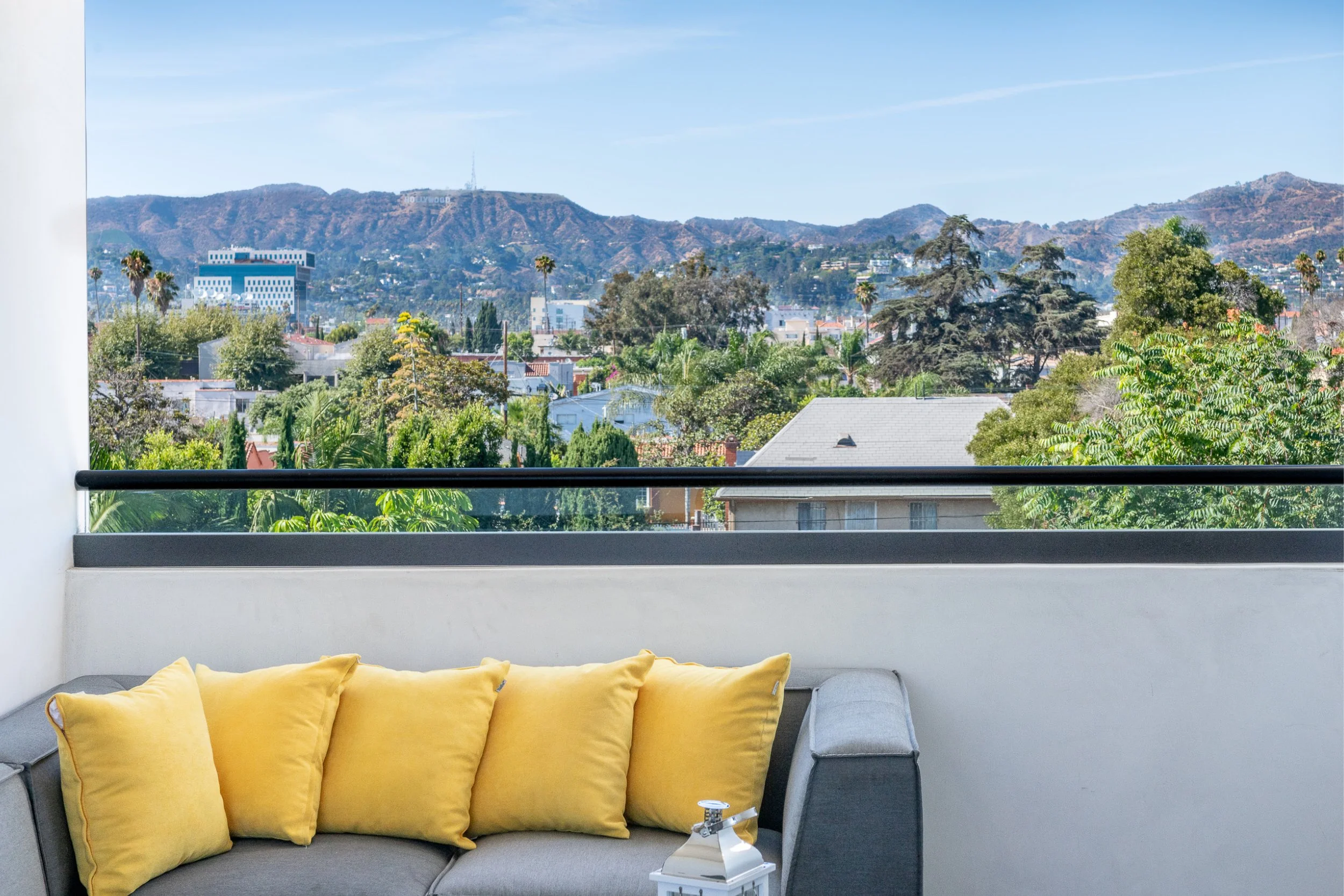 Nestled in the heart of Hollywood’s vibrant Studio District, this thoughtful eleven–unit small-lot subdivision brings modern community living to cheerful life just north of Melrose Avenue. Offering a harmony of privacy and connection, each residence spans approximately 2,000 to 2,700 square feet with three- and four-bedroom layouts, and features open-concept interiors that elevate everyday living through floor-to‑ceiling windows, soaring ceilings, and high-end finishes like Thermador chef’s kitchens, quartz waterfall countertops, mahogany entry doors, Fleetwood sliding glass, wood flooring, and LED lighting. Every home includes full smart‑home integration (“Control 4”) and private, two‑car garages, while expansive, rooftop patios—some offering up to 500 square feet—invite neighborly rooftop moments and sweeping city views of the Hollywood Sign, hills, and twinkling skyline. The design weaves contemporary urban design with neighborly warmth, making this a uniquely community‑driven enclave in one of LA’s most dynamic neighborhoods.